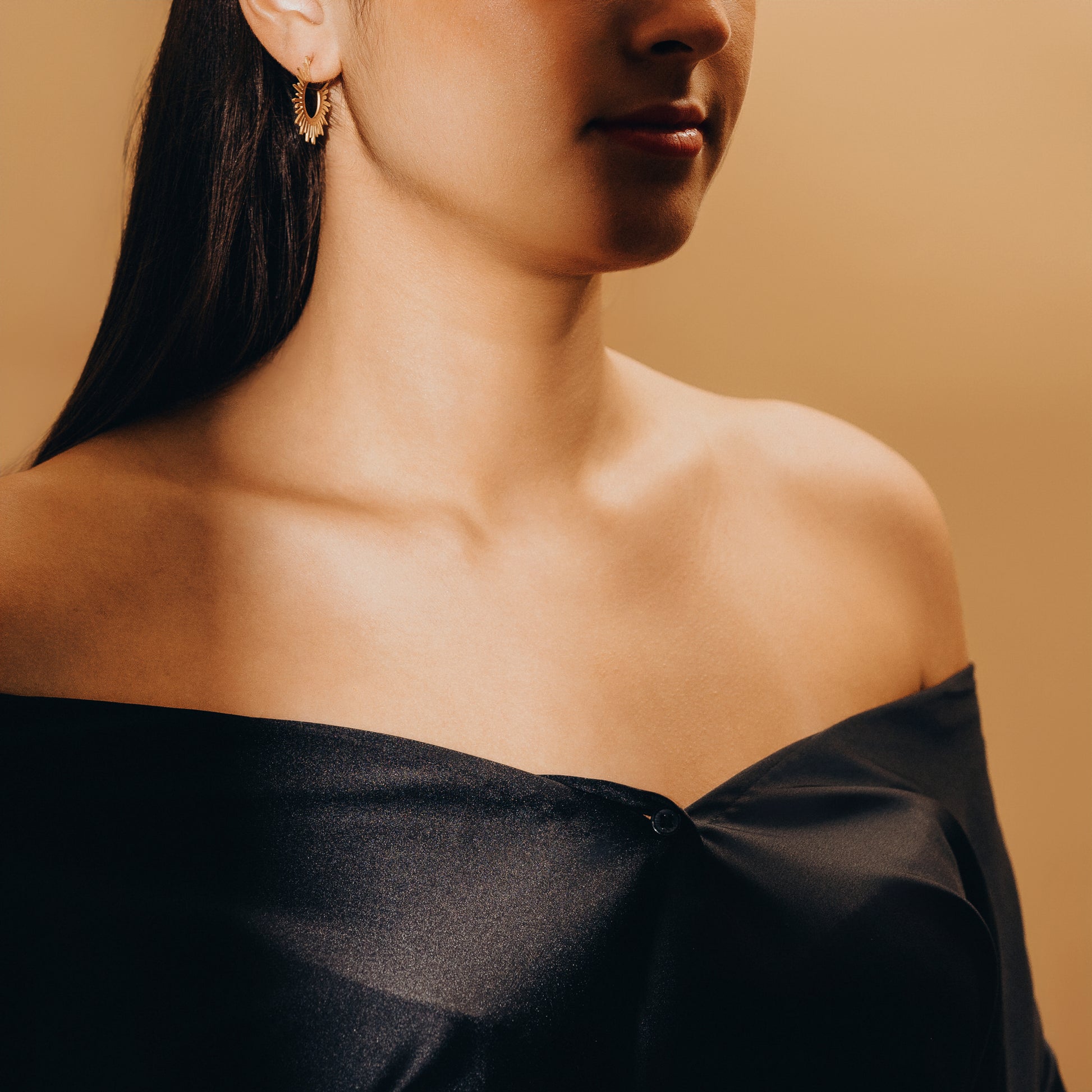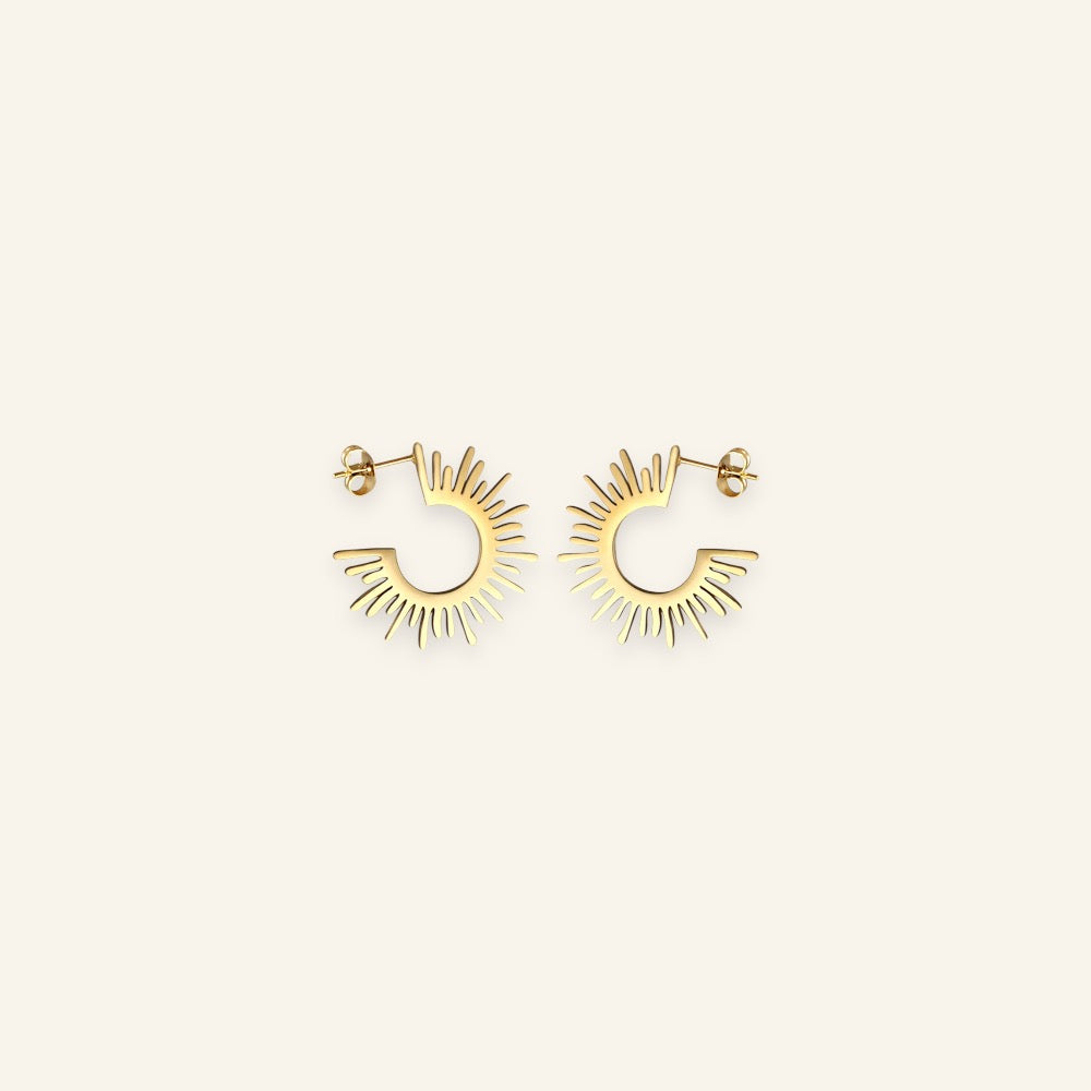 Med sitt halvöppna mönster och strålande detaljer skapar dessa örhängen en känsla av energi och harmoni – precis som himlakroppen den är inspirerad av. Perfekta för att lysa upp din look, oavsett tillfälle.