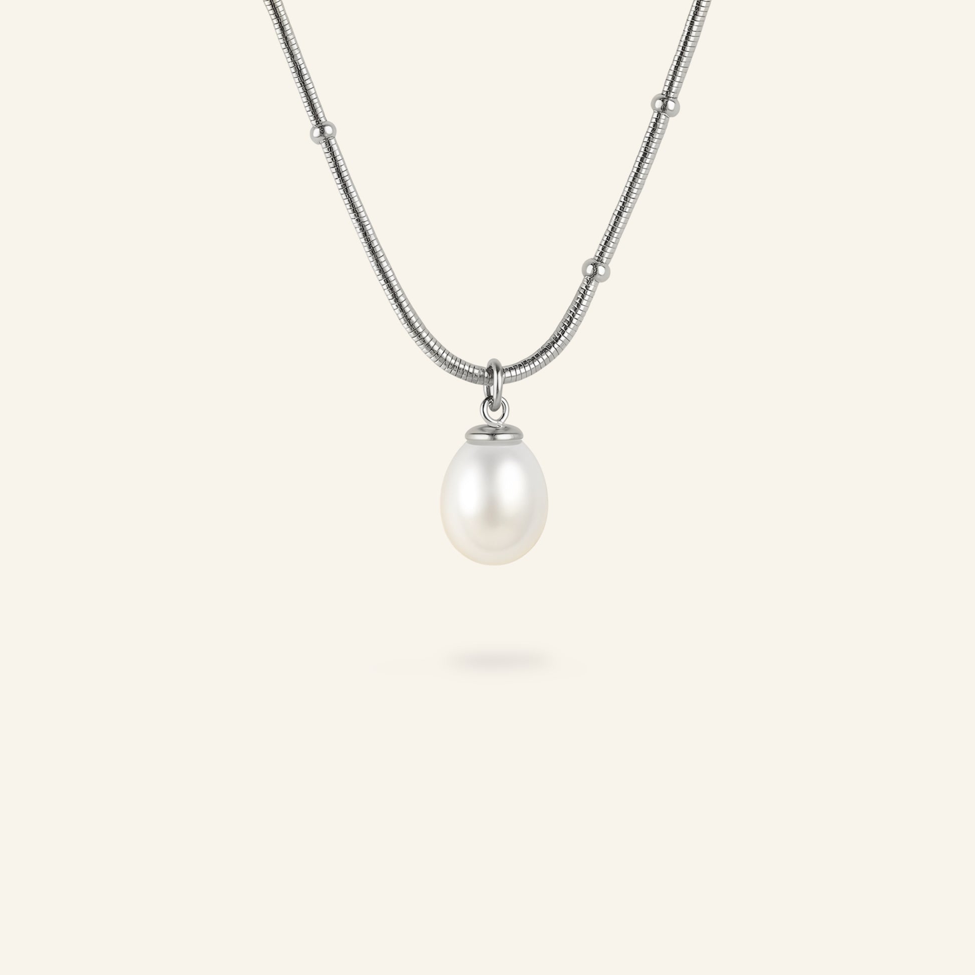 Ett stilrent halsband med en vacker pärla som hänger från en elegant, detaljrik kedja. Perfekt för dig som älskar en sofistikerad men enkel look. Tillverkat i rostfritt stål med slitstark PVD-plätering för långvarig glans.