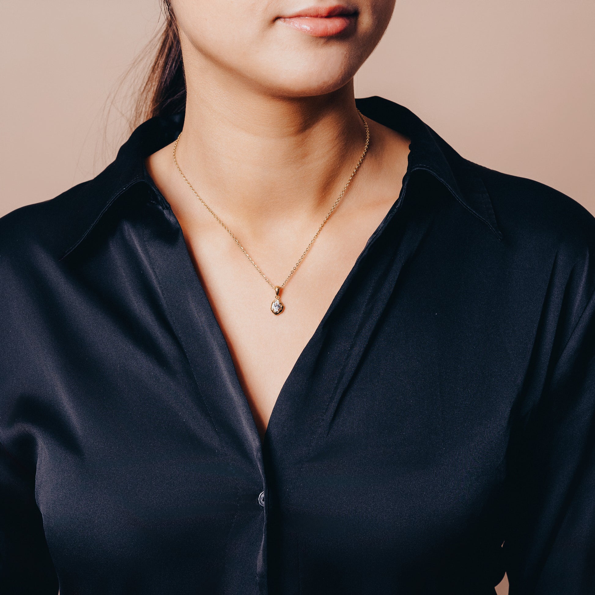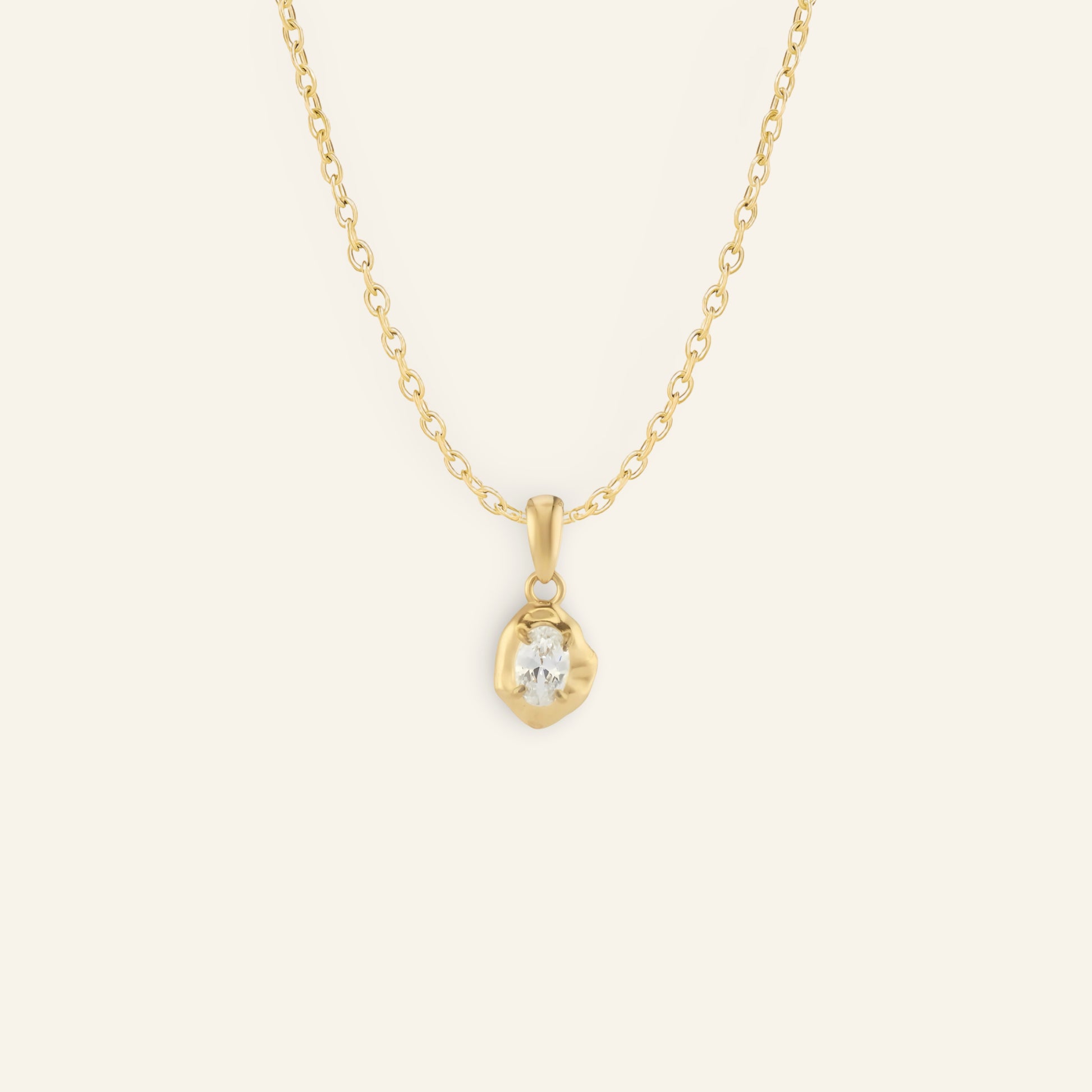 Elegant och minimalistiskt – detta halsband lyfter din stil med sin mjuka, oregelbundna form och gnistrande sten. En tidlös detalj som fungerar lika bra till vardags som till fest.