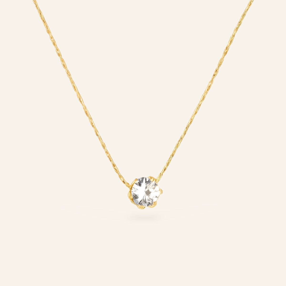 Halsband med tunn silverkedja och en infattad klar sten i mittpunkten. En klassisk design med modern precision, idealisk att bära ensam eller i lager med andra smycken.