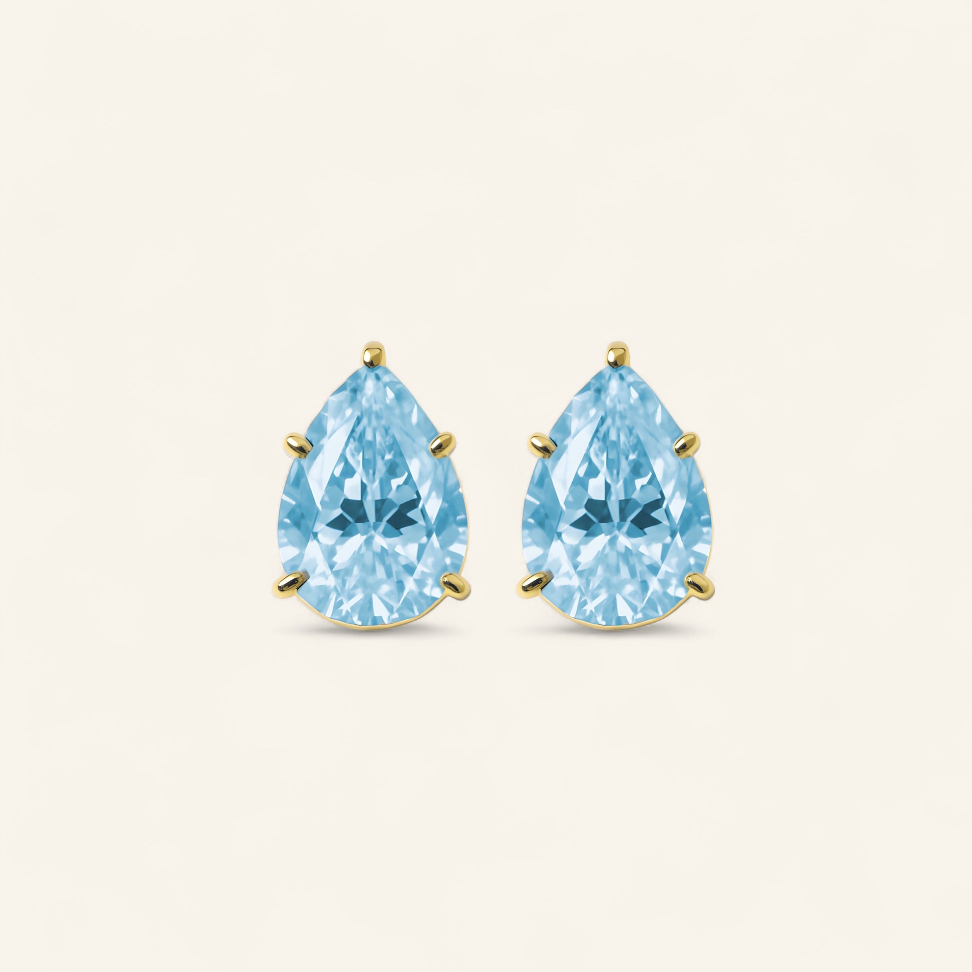 Örhängena är guldpläterade och tillverkade i rostfritt stål, vilket ger dem hög tålighet mot vatten, slitage och missfärgning. Den klara infattningen framhäver kristallens form och färg, medan stiftfästet gör dem enkla att bära.